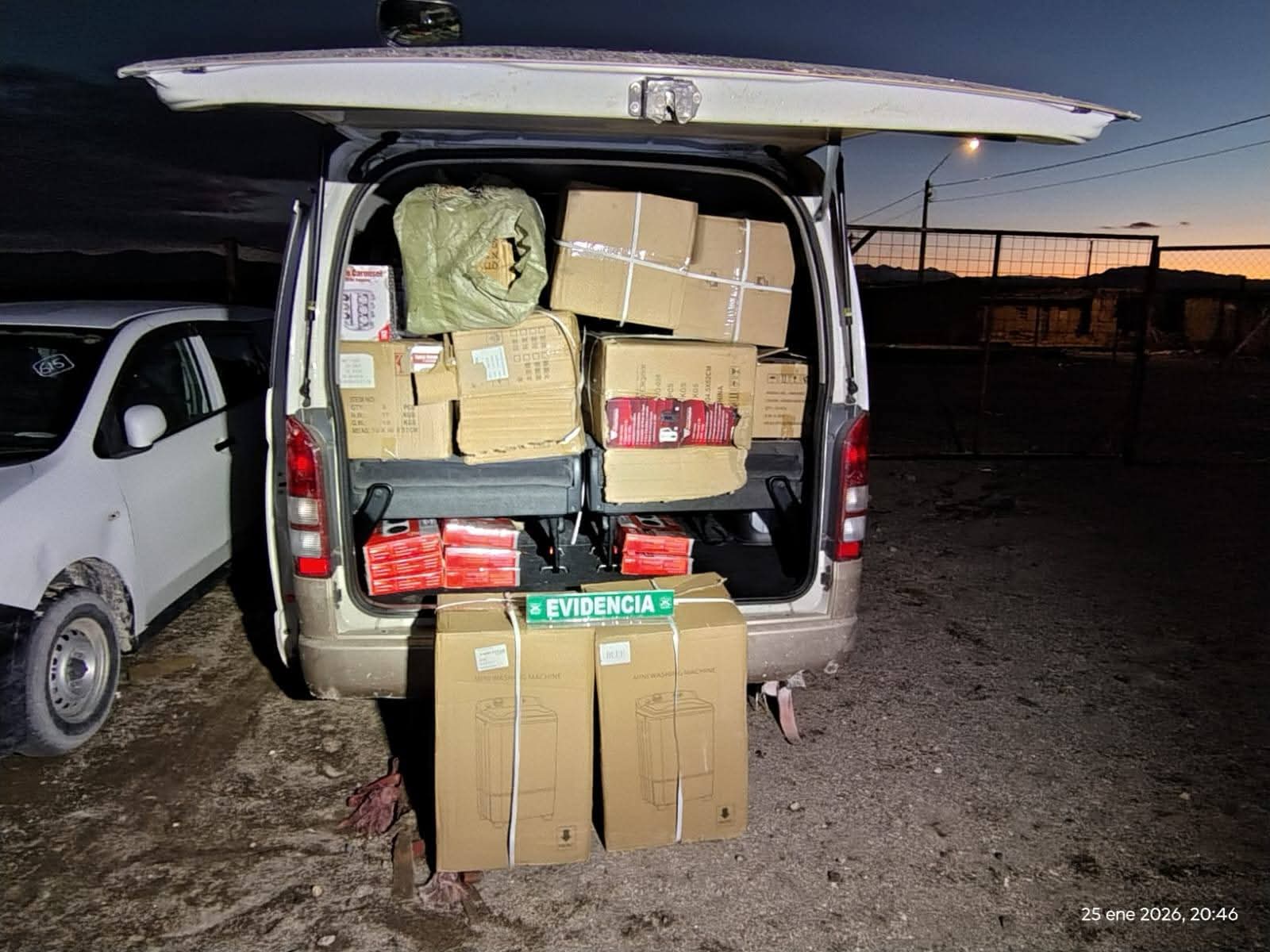 Al revisar el interior del vehículo, Carabineros constató que transportaba una gran cantidad de especies de procedencia extranjera, presuntamente ingresadas al país de manera irregular. Ante ello, el móvil fue trasladado hasta la unidad policial para el desarrollo del procedimiento correspondiente.
